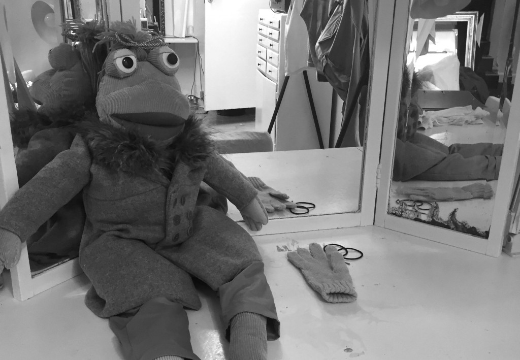 Så er frøken Smith klar til sin scenedebut i forestillingen GODNAT ALBERT af Peter Nordahl. Vores kære skrædder Mikael Jensen har syet verdens sødeste frø….ken?