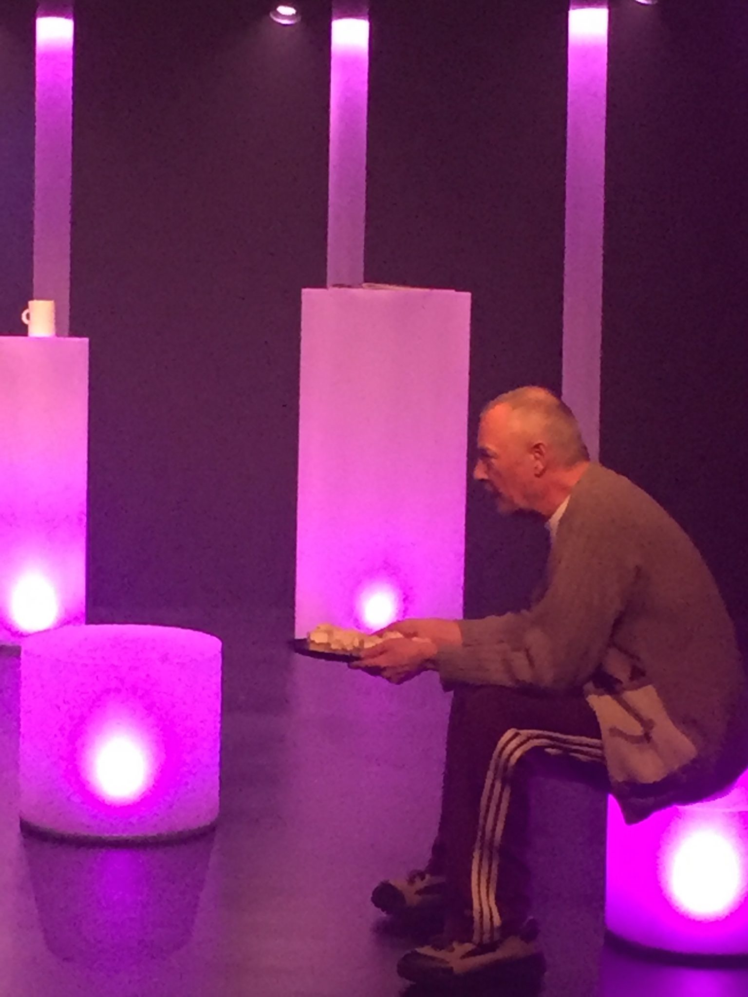 Forestillingens mål er gennem grinet at vække publikums eftertanke over den absurde moderne frie kommunikationsform og give et indblik i livet bag skærmen.