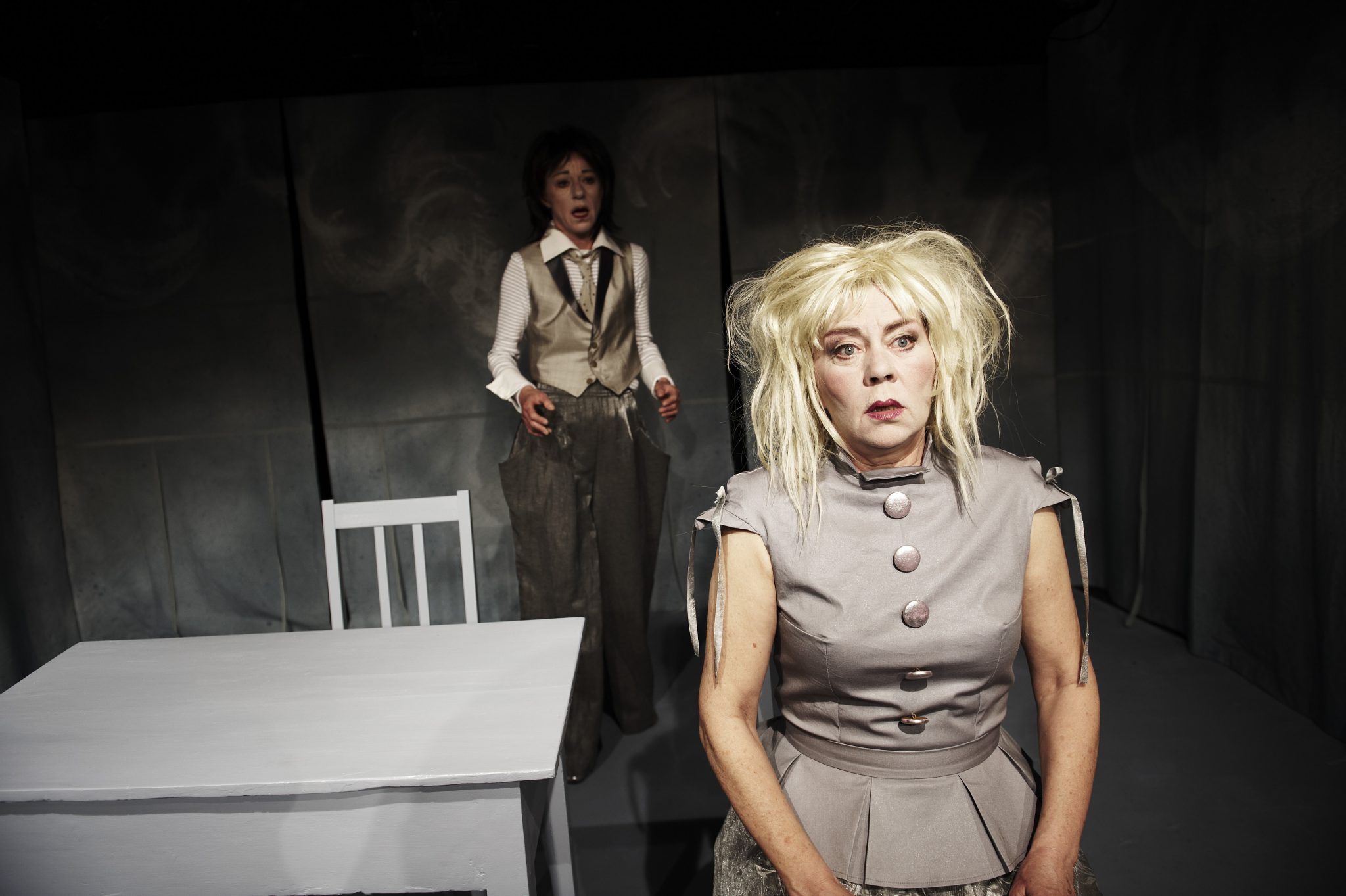 Pølse og Pind deler lejlighed. De ved det bare ikke selv. Line Knutzons stykke er en grotesk, satirisk perle med to elskelige klovneagtige figurer. DEN LUFT ANDRE INDÅNDER er skrevet til en mand og en kvinde, men spilles her af to kvinder i deres bedste alder.