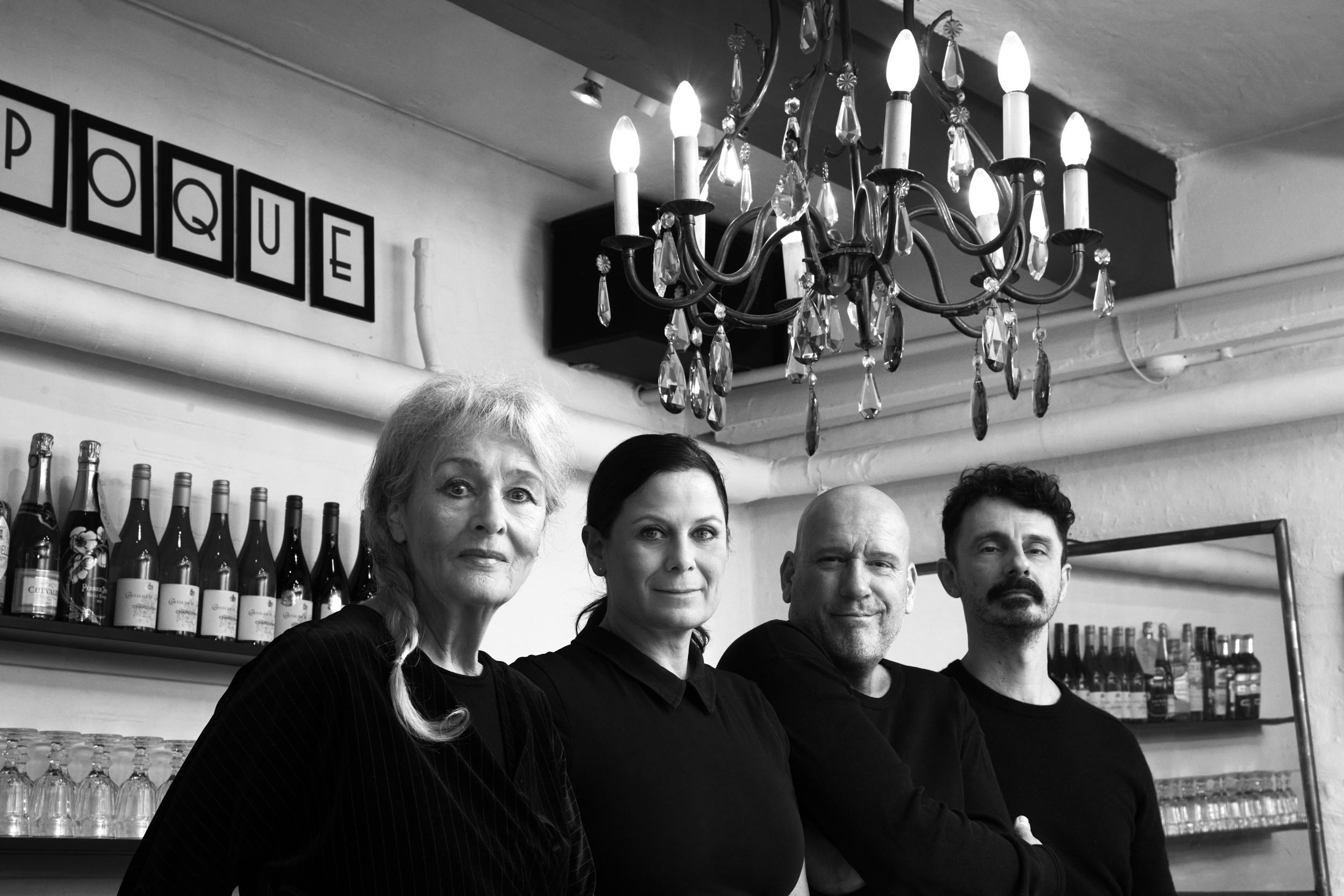 INDEN VI DØR SYNGER VI EN SANG. Fra v: Maria Stenz, Camilla Bendix, Peter Oliver Hansen, Olivier Antunes. Foto: Robin Skjoldborg