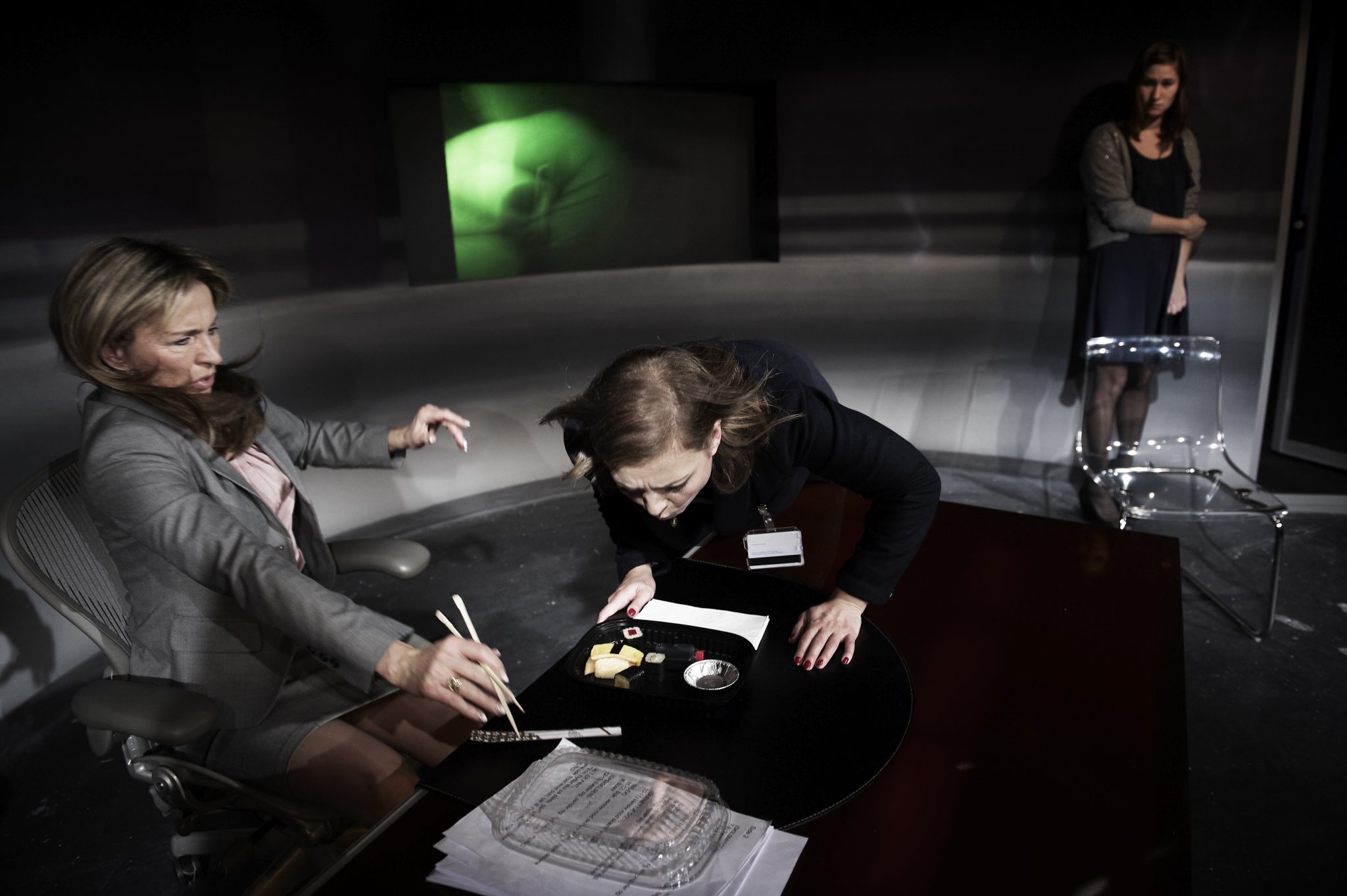 Emma er nyansat. Som et led i firmaets personalepolitik indkaldes hun til en venskabelig samtale med chefen. Denne samtale bliver den første af mange. For chefen har styr på sine ansatte. Hun ved alt og ser alt. Som en edderkop sidder hun på sit kontor og bestemmer, hvem der skal ende i spindet, og hvem der skal slippe fri.